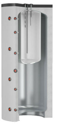 Hőcserélő nélküli puffertartály + a belsejébe beépített zománcozott használati melegvíz tároló. Az acéltároló belül nincs kezelve (nem is szükséges, mivel oxigénmentes víz lesz benne, így nem rozsdásodik), kívülről egyrétegű alapozó festése van. Ebben puffer tartályban azt a meleg vizet tárolja, amelyet a fűtésrendszerében is keringet.